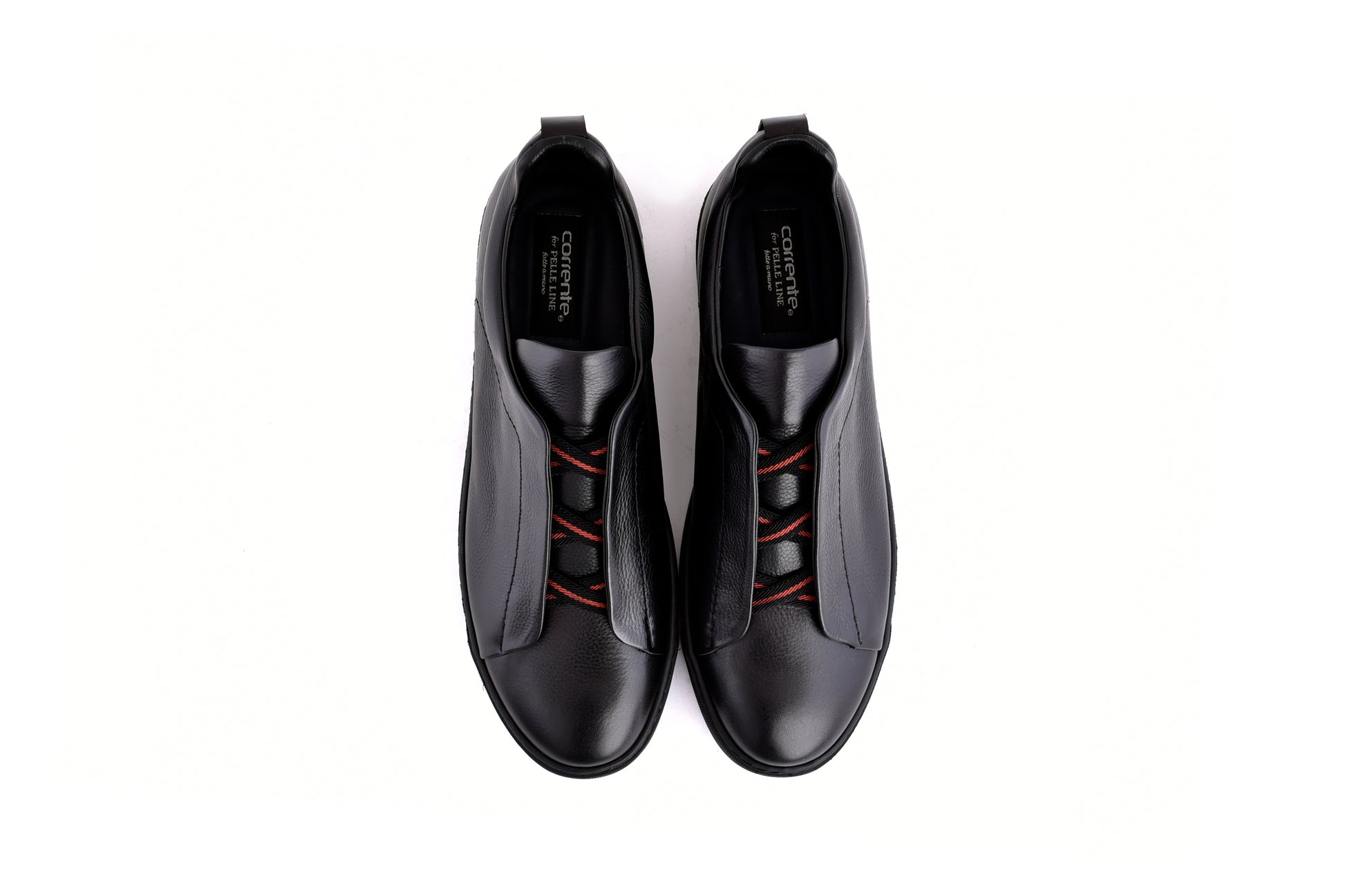 Elevate your style effortlessly with this black fashion sneaker featuring a sleek elastic vamp for a refined fit and modern appeal. Crafted to combine comfort with sophistication, it seamlessly adapts to your movements while adding a polished touch to any outfit. Ideal for those seeking understated elegance in their everyday footwear.